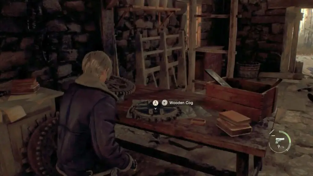 The next important item you can pick up is the Wooden Cog from the farm area. For this, climb up the ladder inside the windmill, and leap from the balcony of the windmill.