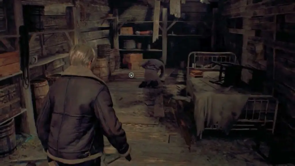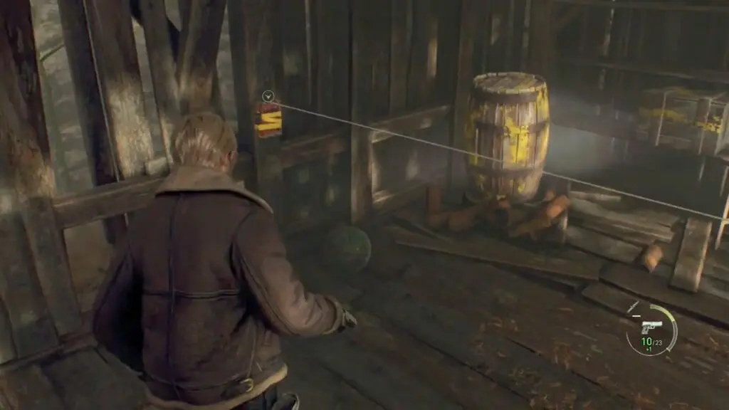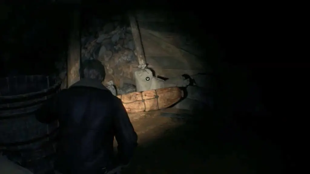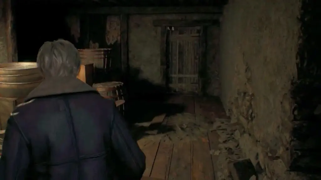 Once the scene concludes, you will find yourself outside the hunter’s house once again. Follow the path ahead to a nearby building, where you can destroy a breakable barrel to acquire ammunition. Then, enter the house to discover the first Typewriter savepoint of the game.
