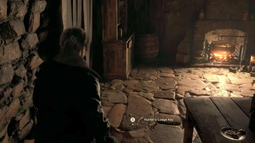 Once the scene concludes, retrieve the Hunter’s Lodge Key from the floor.
