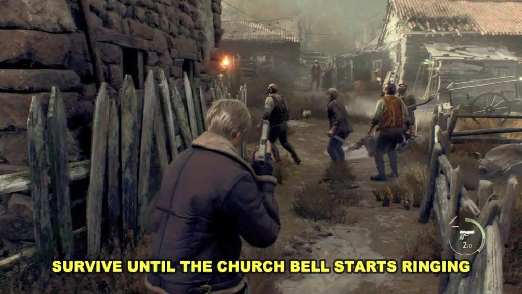 In this area, you will have to fight the enemies to some extent and survive for a certain amount of time until the church bell starts ringing which will compel all enemies to withdraw automatically.