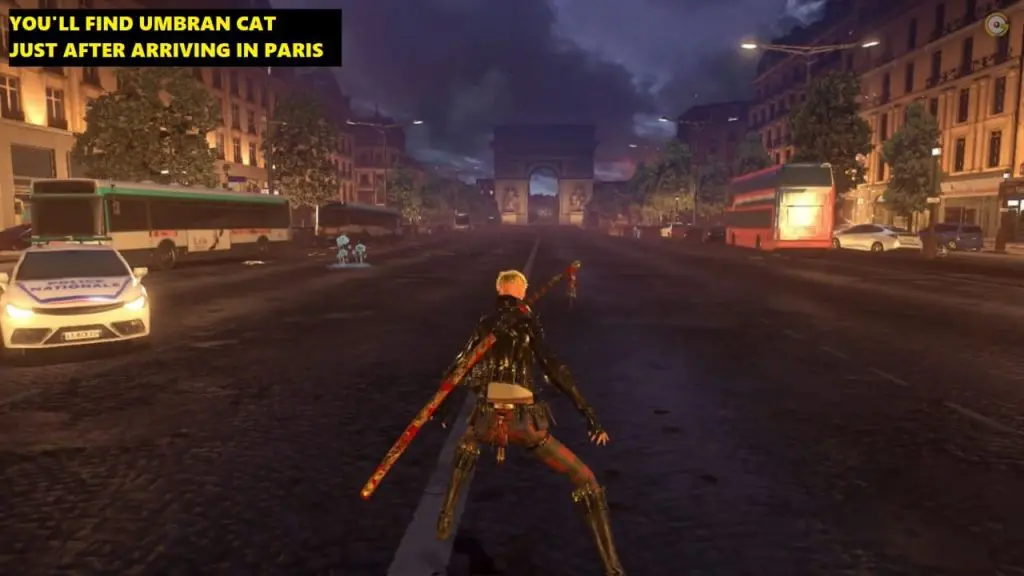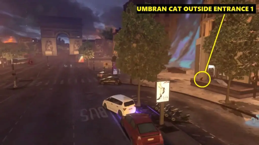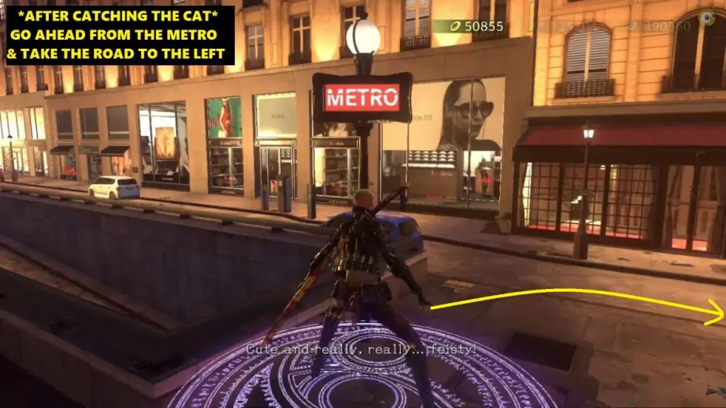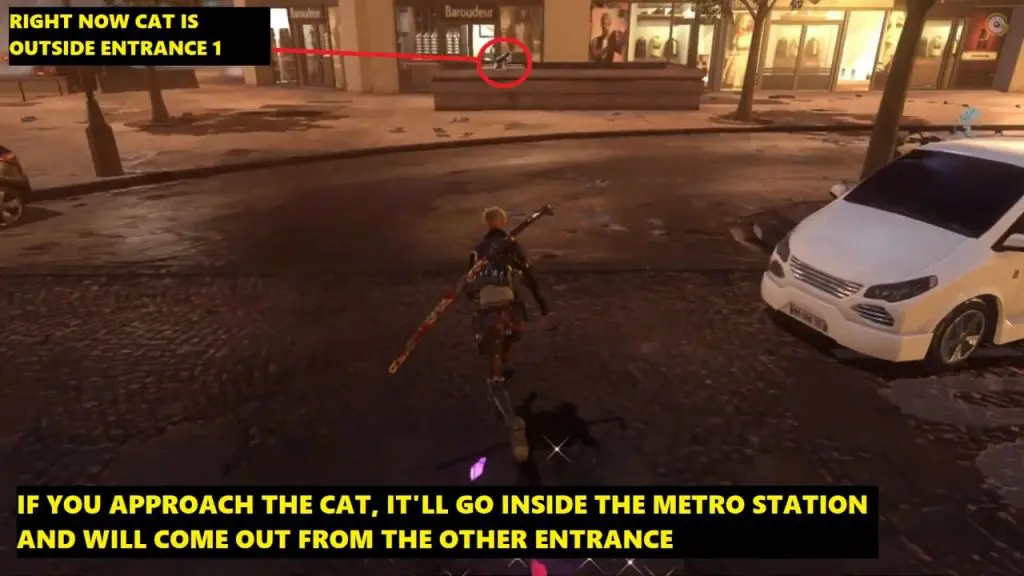 You will find the CAT just after arriving in Paris. There are 2 metro station entrances on both side of the main road (see images below). The cat will be on one of the metro entrances. As you approach the cat, it will go inside the metro station and will come out from the other entrance. The cat will keep doing it whenever you get near it. To easily catch the cat, you must identify the 2 sitting positions of the cat (outside both the metro entrances).