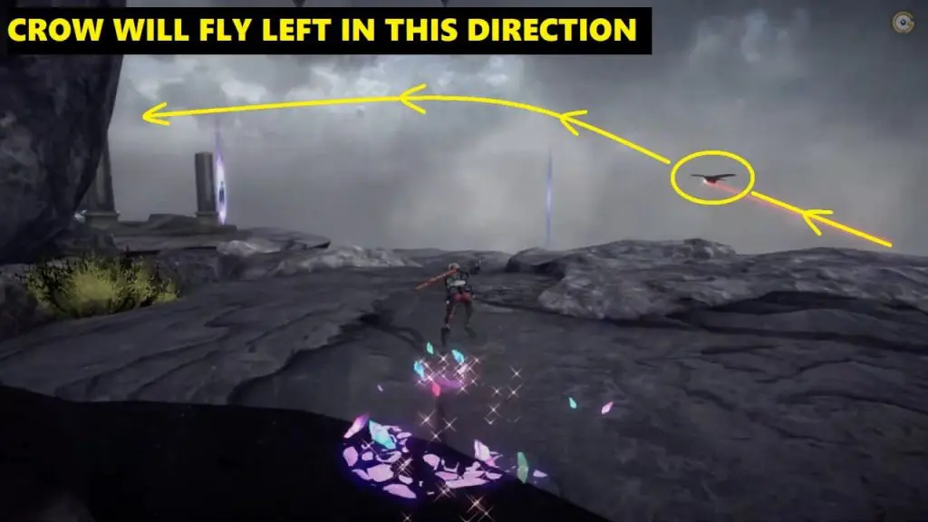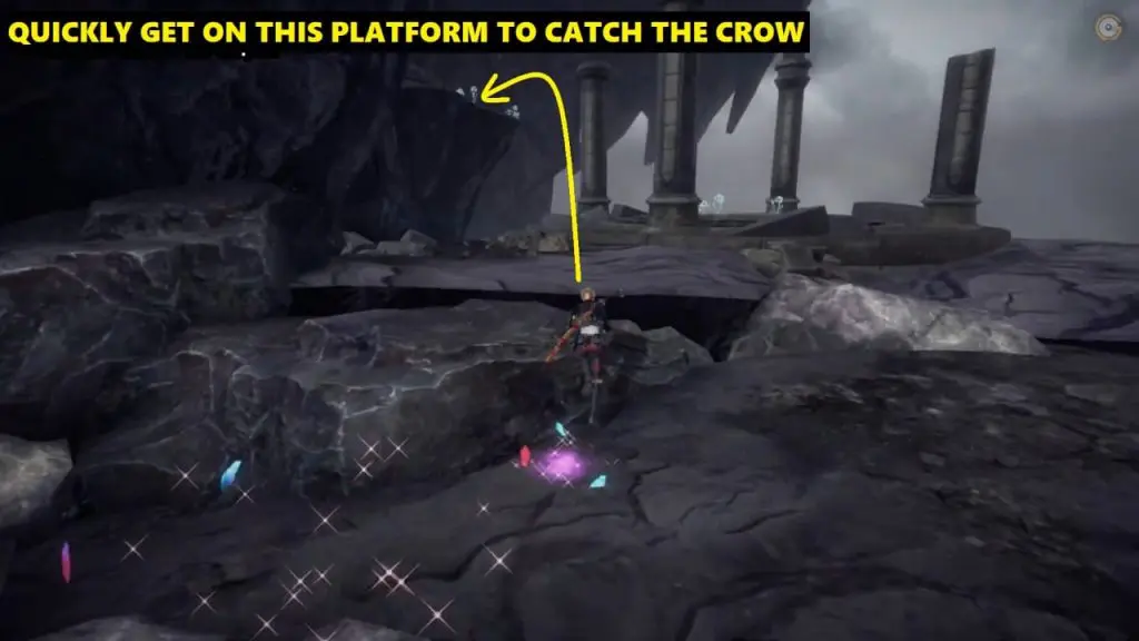 NOTE: Start sprinting before approaching the crow –> turn left & keep running –> quickly jump on the platform on which the crow is supposed to go.