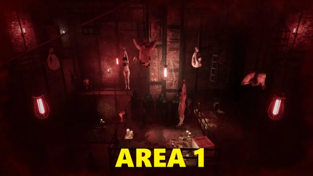 For explanation purposes, we have divided the Bloodhouse into three different regions. Area1 (Big open area with bodies hanging above), Area2 (Building in front of Area1 in which you enter through grilled-iron gate), and Area3 (Area where the tall lady is roaming).