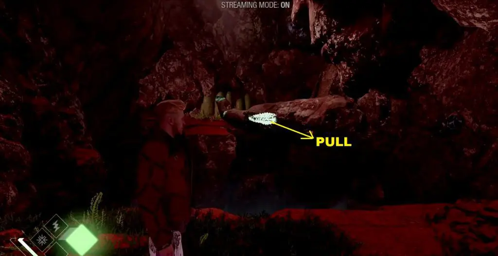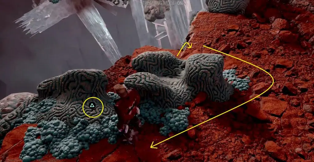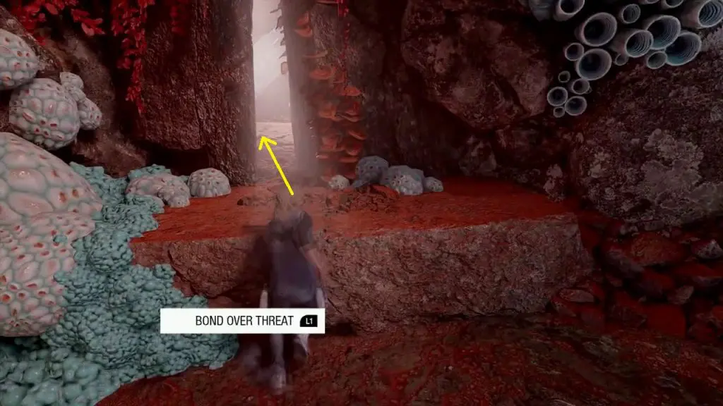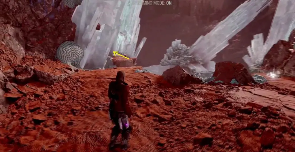 After defeating Slakebeast, proceed ahead in the only path. Just a little ahead in the path, you will find a thin gap on the wall as shown below. Squeeze through the hole then go through the crystals on the left side. After that climb the rock in front to find the Guardian Collectible on the ground.