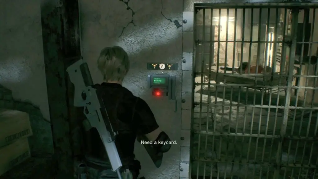 Go through the newly unlocked door to find Ashley. Drop to the lower level and defeat both monsters. Afterward, interact with the gate, and a screen prompt will instruct you to obtain the Level 3 Keycard.