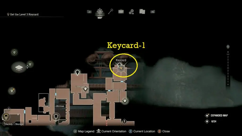 Proceed to the northern end Dissection area and interact with the power console and solve the puzzle. This will result in the opening of the door located to the north of the Dissection, granting you access to the Level 1 Keycard, situated towards the room’s rear.