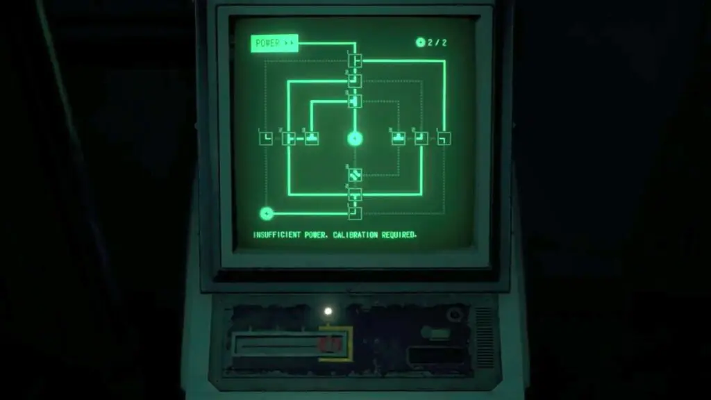 Upon reaching the end of the path, activate the lever to modify the power route. Below location is the location of the power control lever.
