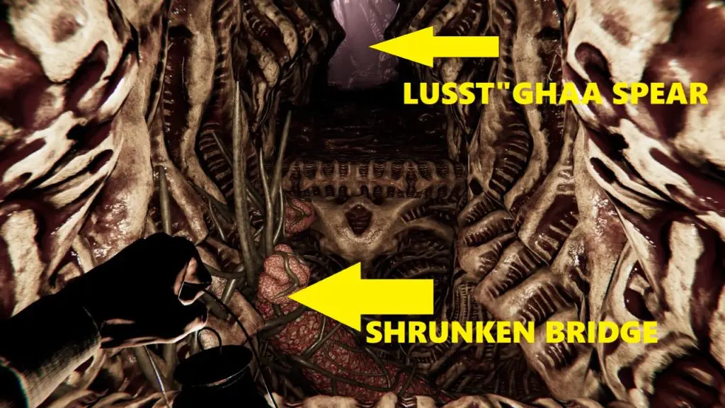 # Now, go to the area which was previously inaccessible (from where the corrupted Enthralled came). Keep going, and you’ll eventually reach an area with the gate. Cross the bridge (which was earlier shrunken) and collect the Lusst’ghaa Spear.