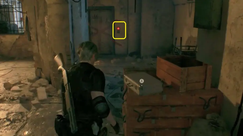 The door on the current floor is inaccessible, and you must proceed upstairs to activate it. Once you’ve reached the upper floor, enter the room and use the button on the console to unlock the door on the lower floor.