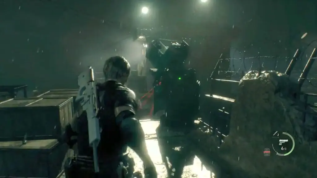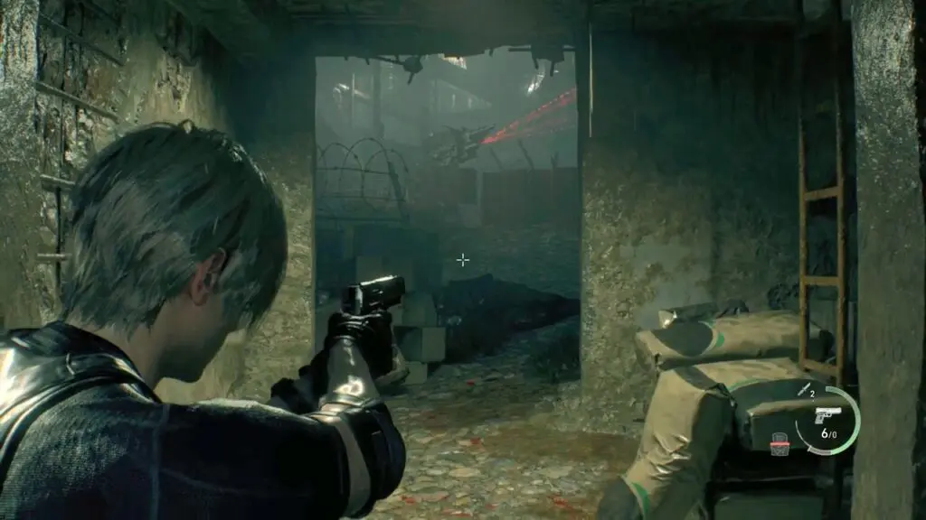 Once you reach the top, proceed along the path until a brief cut scene introduces an enemy wielding a rocket launcher. You may choose to either take cover or shoot the enemy. Finally, proceed through the door to reach the next building.