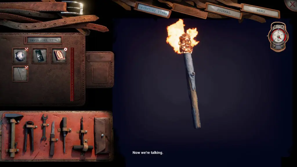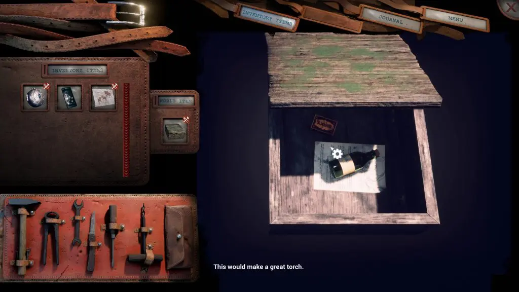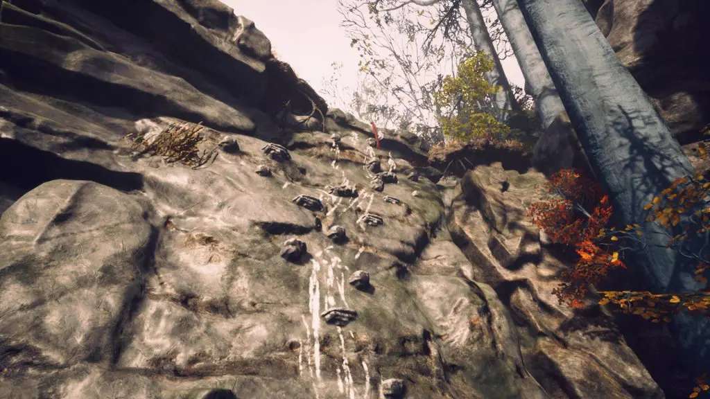 As you climb the wall, just in front of you there will be a picture pointing towards a hidden stash. Go to your right until you come across a tree with mushroom like things growing on it. up ahead you will find a wodden box hidden under a big rock in the mountain. Open the box and take the pice of cloth, Kerosene & match Box inside it. Now go back to the picture that hinted about the stash. In front of the picture you’ll find a campfire. Collect the torch wood from it. Now open the inventory and cut the piece of cloth using knife. Then apply the cloth to the wood, then the kerosene to the cloth, and finally, light it with the matches. This will give you a torch.