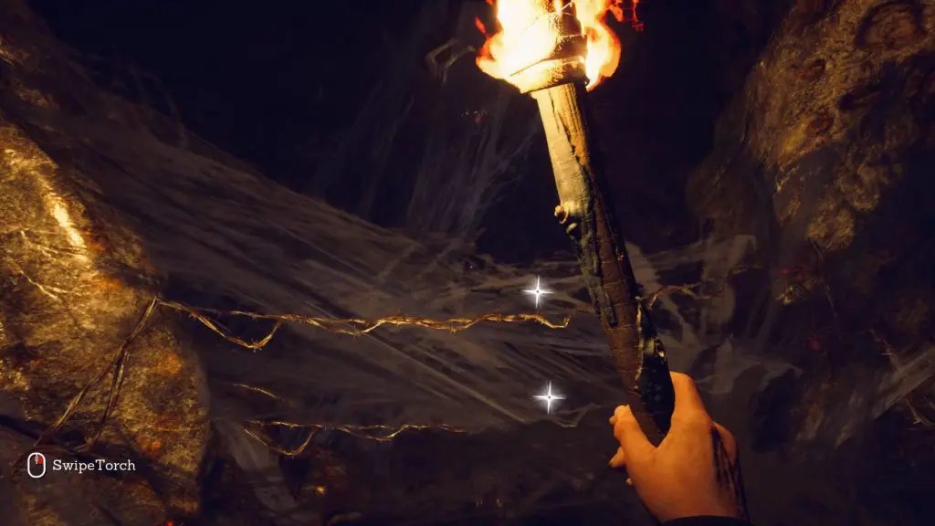 Torch with you now, cut the barbed wire to neter the spider cave. Go towards the back right area there you’ll slip down. Continue on straight until you see another set of barbed wire. Cut it and take a left to find a red collectible, then go in the opposite direction to find more barbed wire. Cut them and drop down. This will take you out of the Spider Cave.