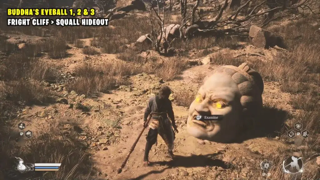 In Chapter 2 of Black Myth: Wukong, players can unlock a secret boss (Shigandang) by collecting six Buddha’s Eyeballs. These eyeballs are hidden inside Buddha head statues scattered across the Fright Cliff region. As you approach each statue, you’ll hear these Buddha head statues chanting, which helps in tracking them down.