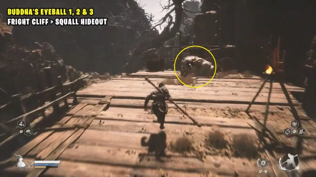 In Chapter 2, when you first enter the Fright Cliff region, you will come across a Buddha’s head on the ground just in front of the Squall Hideout checkpoint. Interacting with this head will grant you the Buddha’s Eyeball key item.