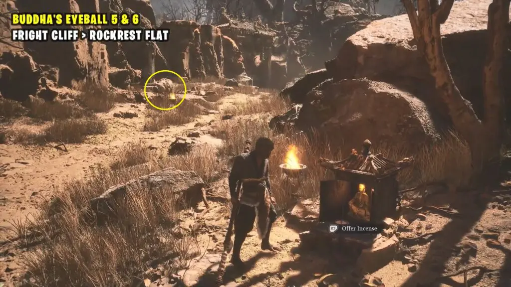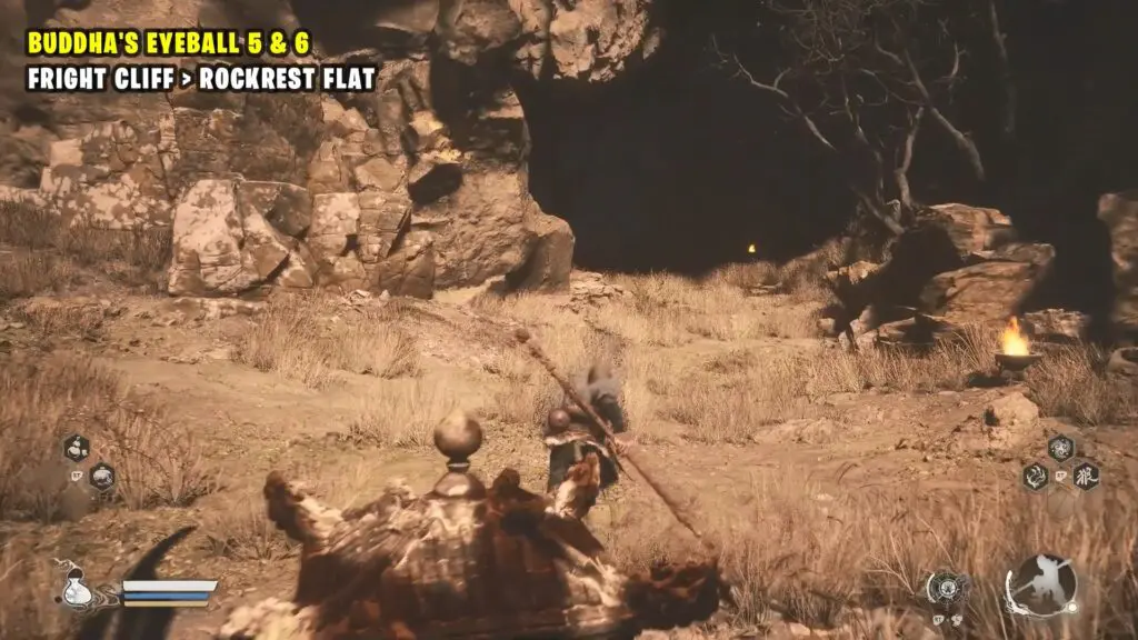 After collecting all six of Buddha’s Eyeballs in Black Myth, return to the Rockrest Flat Keeper’s Shrine. Take the left path where you previously found the fifth Buddha head statue. Proceed through the doorway just to the right of it.