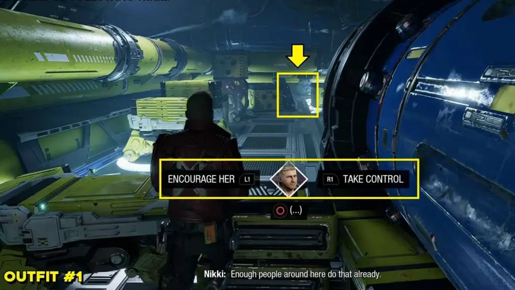 While following Nikki in Chapter 2, you will get options to choose several conversation lines. One of the conversation lines will be to choose either “Encourage her” or “Take Control”. When you get this particular line, look to your left to find an opening in between some yellow pipes. Now, instead of following Nikki, you can crouch under yellow pipes to enter a new area. Go to the end of this new area to find this Costume collectible in a purple container. I have attached a screenshot for reference. You will find Nova-Lord Outfit.