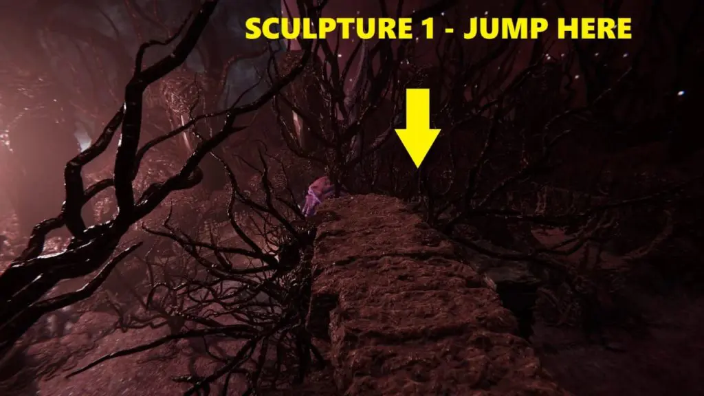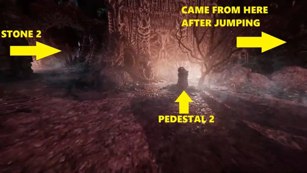 STEP 3: For 3 stone sculpturesEnter inside the newly opened gate behind the Pedestal_2. Follow the path to climb the ramp and jump inside the closed area to collect 1st sculptures.