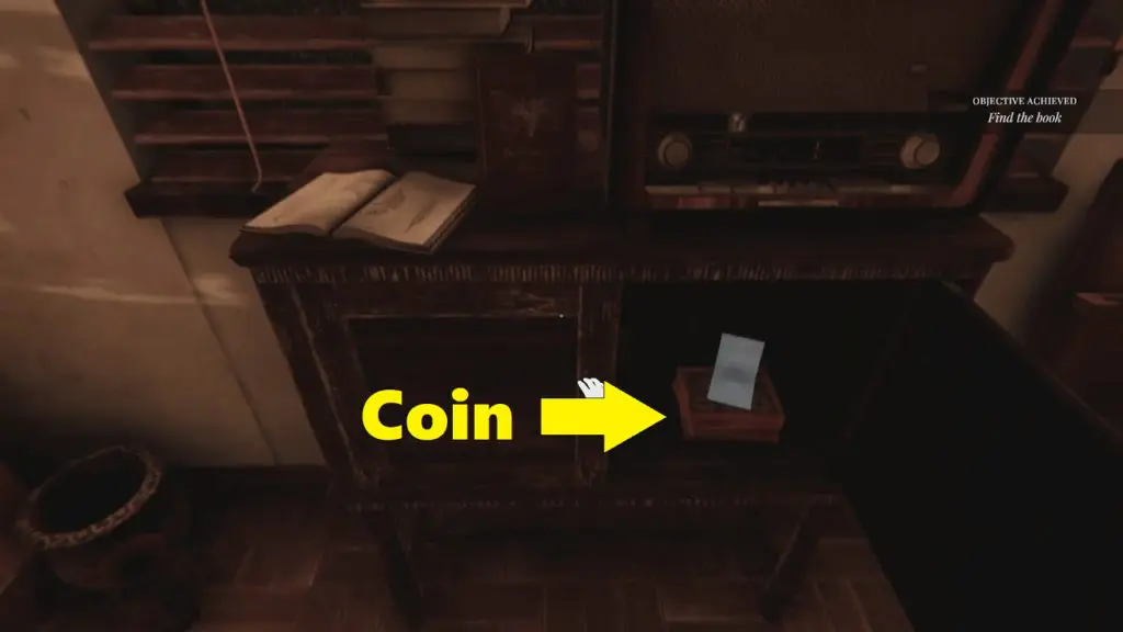 - Find the Coin: The coin is inside the wood stand next to the bookshelf