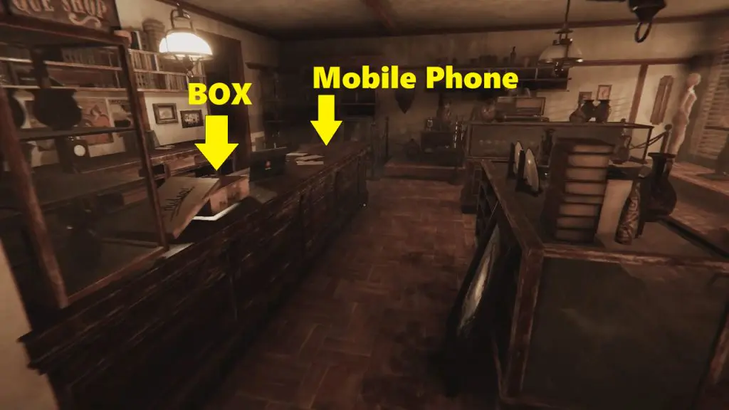 - Place collected items in the box: Go to the shop counter and place all items of Mrs. Hudson’s order inside the box. Use “E” to use an item from your inventory.
