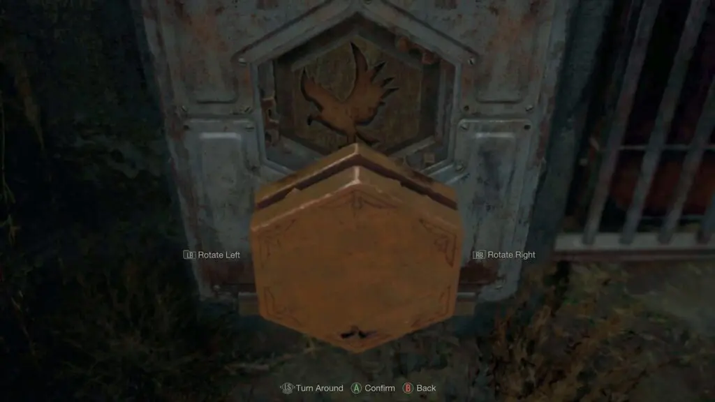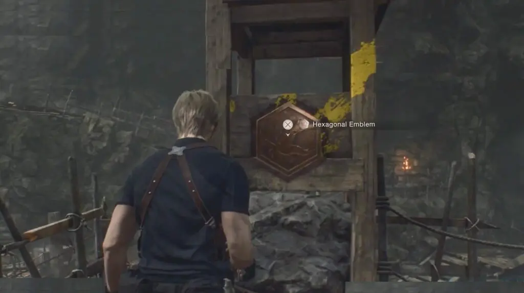 At this point, interact with the spot on the wall across from the Merchant and insert the Hexagonal Emblem. Make sure to adjust its orientation by rotating and flipping it, so it aligns with the slot in a mirrored position. Finally, interact with it to open the gate.