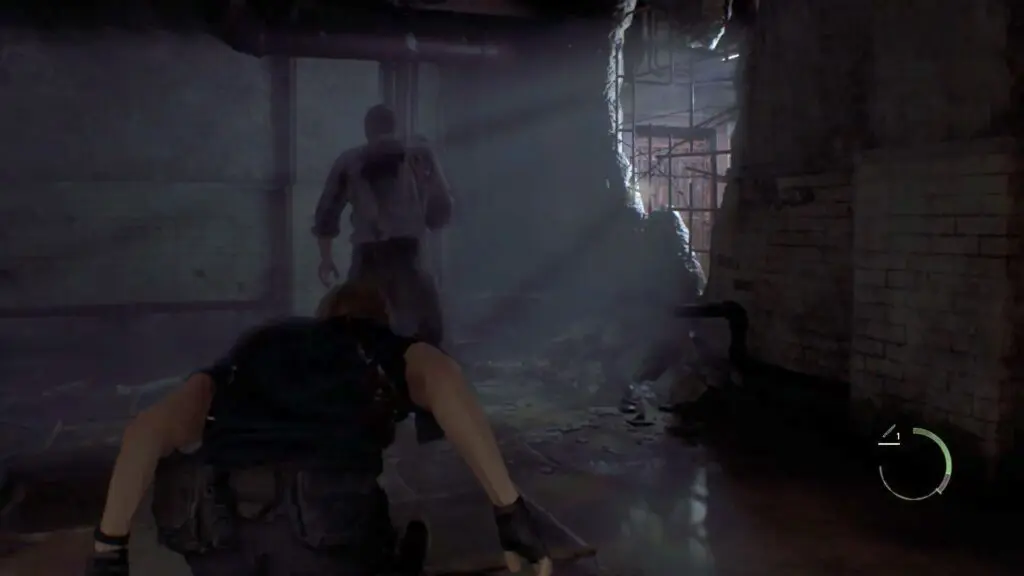 Proceed towards the left and leap through the window to reach the adjacent room. Then, keep moving along the route and eliminate another enemy. Upon reaching the last room, rotate the valve to open the door on the opposite side. After that, rush back to retrieve your equipment from the room.