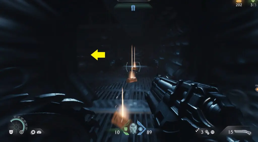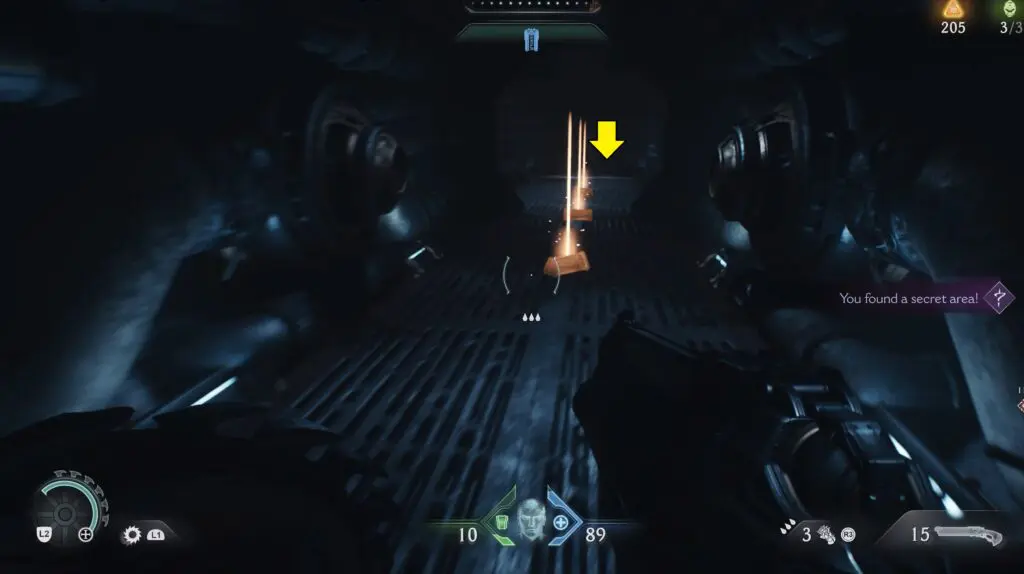 After reaching the top, head to the left where you’ll see three crates. Climb onto the crates and enter the vent to discover three gold pieces.