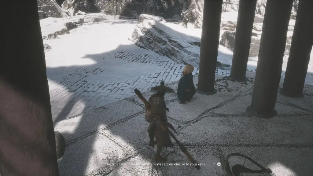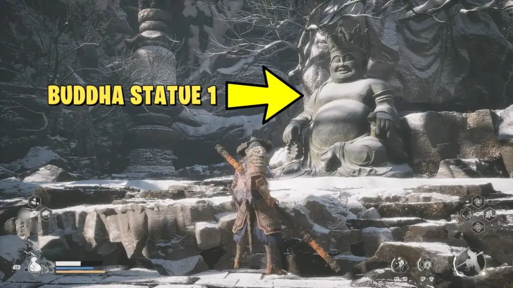 In Chapter 3, you’ll meet a small monk in a courtyard. He will ask you to find 4 Buddha statues and say a special prayer at each one.