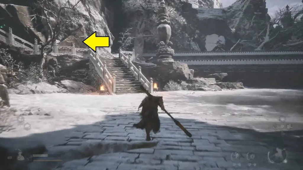Continue following the path next to the stairs to find the next statue.
