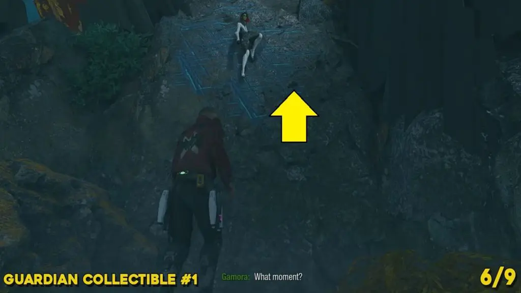 This is available after fighting a new monster type called “Slakebeast”. After the fight, you’ll be in an area where you must command Gamora to climb a wall and lift you up to shoot down a reactor hanging from a roof. After bringing the reactor down, command Drax to place the reactor near the ledge that is opposite the wing of the spaceship. Climb up and then jump down to the platform below to find this on the ground.