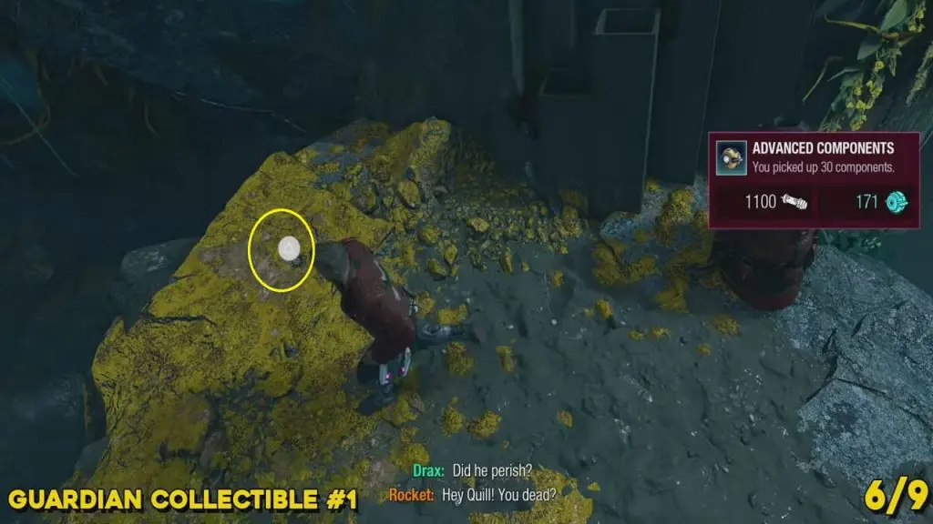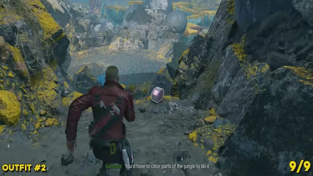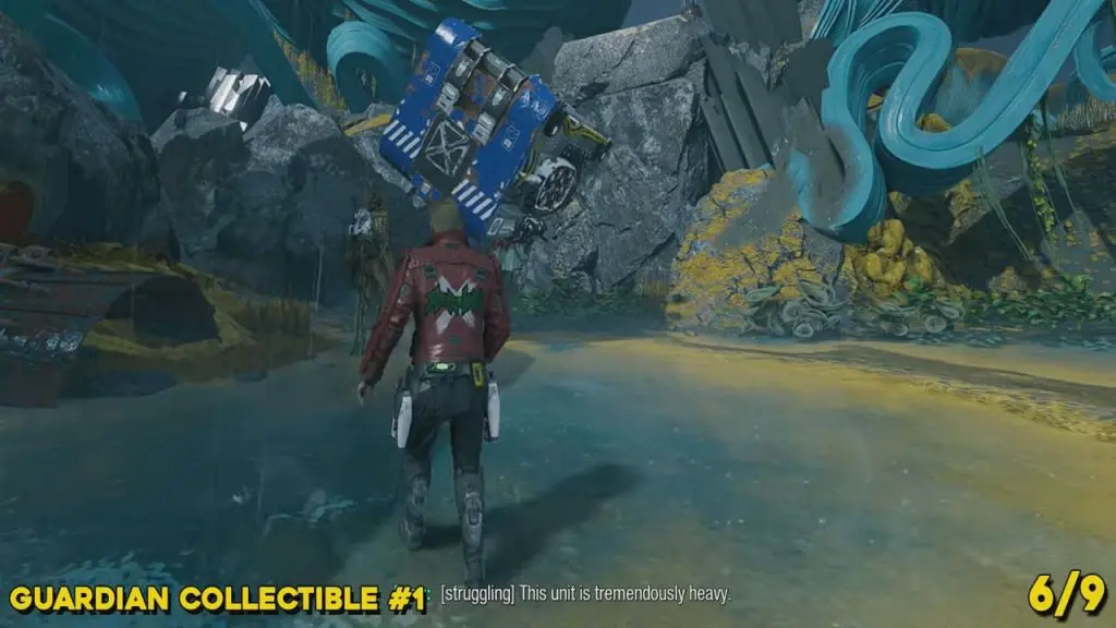 This is available after unlocking the Ice Element for Star-Lord’s blasters. The player will need to freeze two platforms and then command Gamora to cut through a wall of back pipes. Immediately after, look to your left on the ground to find this. Make sure to collect it BEFORE dropping down.