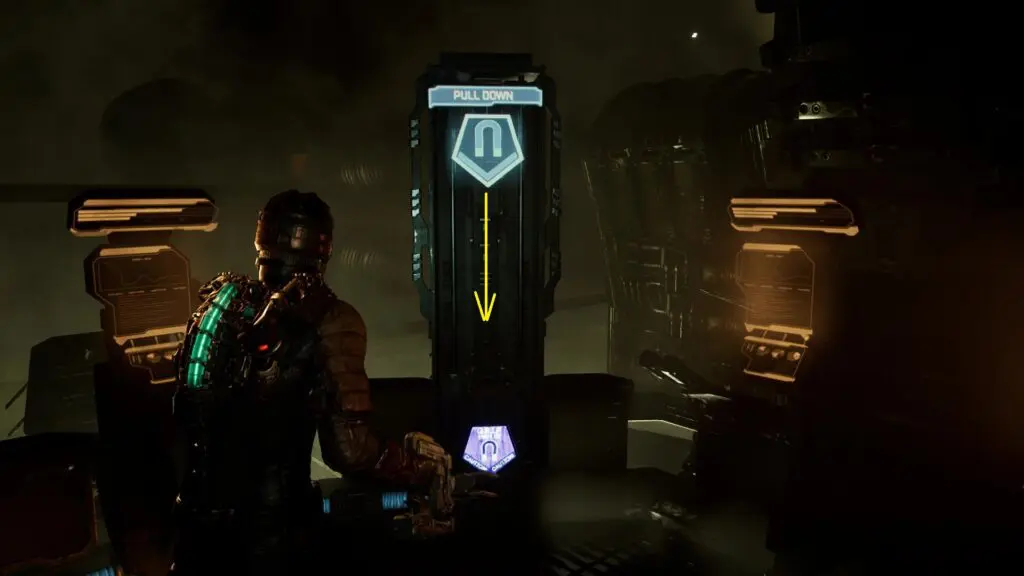 Now go back to the save station and climb down the stairs next to it. This will take you to the South Refuel Station. Use Kinesis to pull down the lever there as shown in the picture below to Refuel the South Engine.