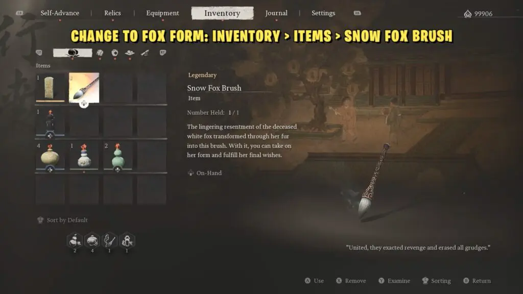 There, you’ll find a corpse next to the gate. Talk to the corpse until a fox spirit appears and gives you the ‘Snow Fox Brush.’ The fox spirit will then ask you to find his killer, who is a monk at the New Thunderclap Temple.