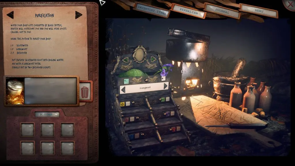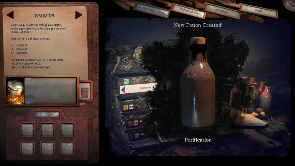 Once You’ve collected the herbs do the following steps to prepare the Purification Potion:
