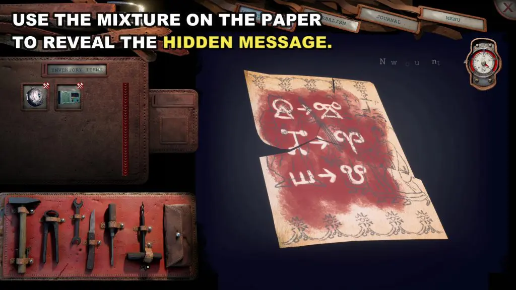 4. Read the Book ‘A Book of Ciphers’ to learn how to reveal the code on the paper. without reading the book you wont be able to pick the required items.