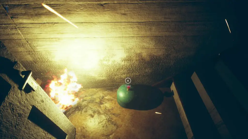 Go upstairs. There you’ll find a bodybag. Open it to find a book, after which the place will go up on flames. Run through the area which is free of fire, eventually reaching the ground floor. Pick up the gas cannister from near the stairs and place it at the right corner of the nearby door. This will blow open the door unlocking a new room.