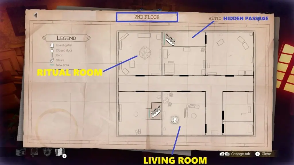 On the second floor, interact with the vase (adjacent to the ritual room) and choose the options “stretch” to find a note of piano & shotgun. This will unlock the secondary objective