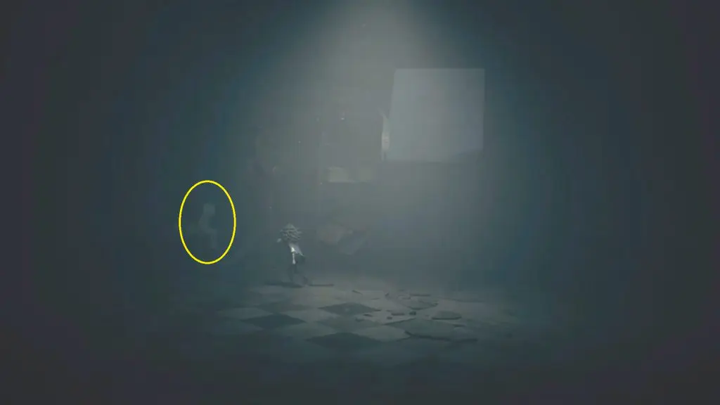 After picking up the first doll, which changes your surroundings, head all the way toward the screen. At the end, enter the room on the right, where you’ll find another doll lying on the ground.