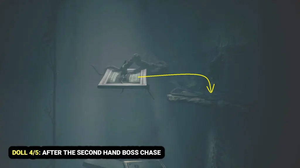 After being chased a second time by the boss’s hand, you’ll reach a door that needs to be opened by pulling a lever. Before doing that, head to the back of the hallway and pick up the doll.