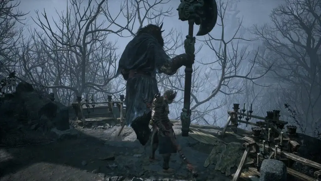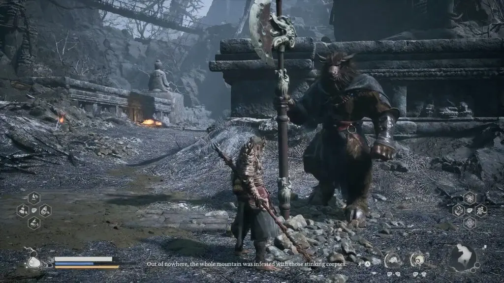 Go to the Ashen Pass I Shrine in the Woods of Ember. Proceed to the left of the shrine until you see a fight going on. There you will find a bull-shaped enemy named Pale-Axe Stalwart (NPC). Beat him, and then talk to him. He’ll tell you to destroy five Element Carts to reach Bishui Cave, a secret area in Chapter 5.