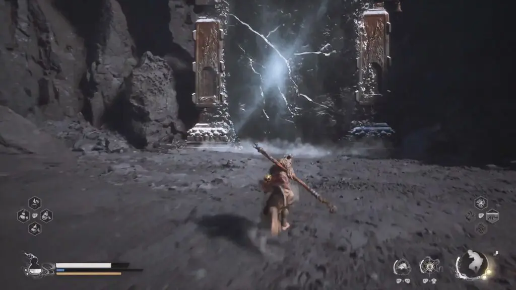 Interact with the frozen door to open the frozen door. Once you’re inside, find the large pillar. Stand near it, and it will teleport you to the Bishui Cave secret area.