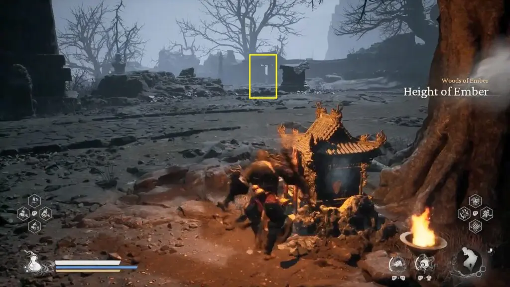 Pass another rope bridge, then go up the stairs again to reach the Height of Ember Shrine.