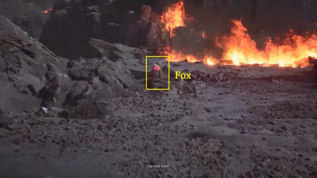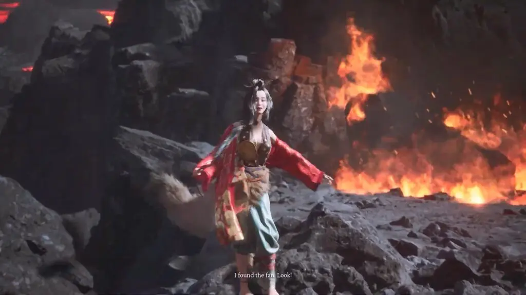 Go left from the shrine until you see a giant rolling metal ball. Go past it, and you’ll find a fox. The fox will change into a girl. She will use her fan to clear the flaming barricades in the next area (Cooling Slope).
