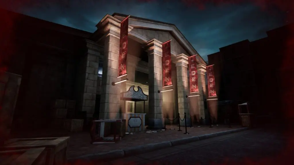 Go to the Eden theater hiding from the enemy, avoid confrontation. The theater path is through the alley on the right side of Dr. Austrerlitz’s office. Follow the arrow marks on the wall. Enter the Eden theater and move the glass shelf near the counter to go inside the Eden cafe. Again go through the last door behind the siren to enter the main theater hall.