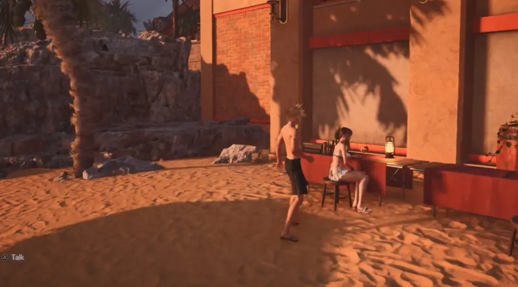 It is available after the boss fight. After the fight interact with her at the bar on the beach and choose “Lot’s Happened Since Then”.
