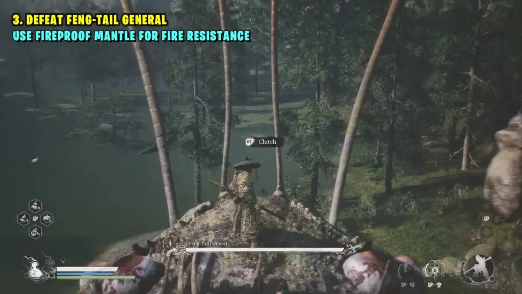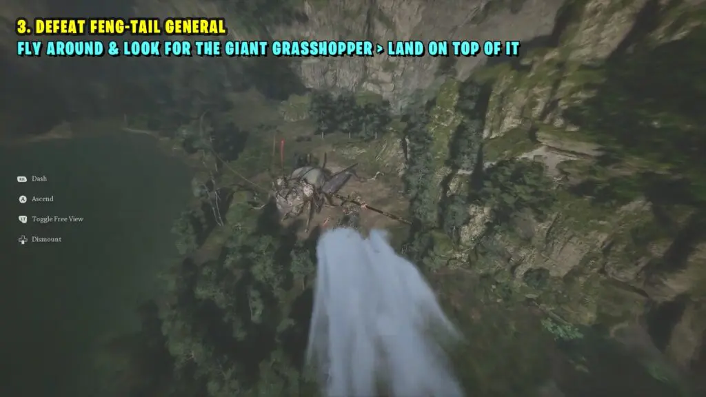 When you find the Giant Grasshopper land on its back and interact with its head two times. This will defeat Feng-Tail General. After that, you’ll get the Golden Feng-Tail Crown as your reward.