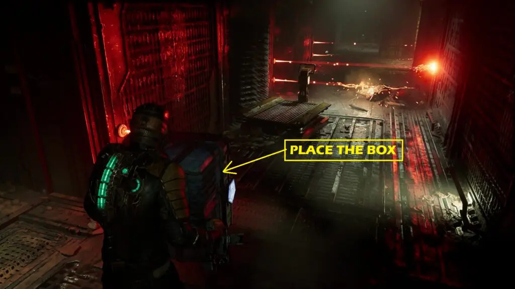 Step out of the elevator and proceed ahead. Soon you will reach an area with lasers blocking your path. Use Kinesis to move the box there in front of the laser as shown in the picture below and proceed ahead. Cross all the lasers then turn right and enter Extraction Area.
