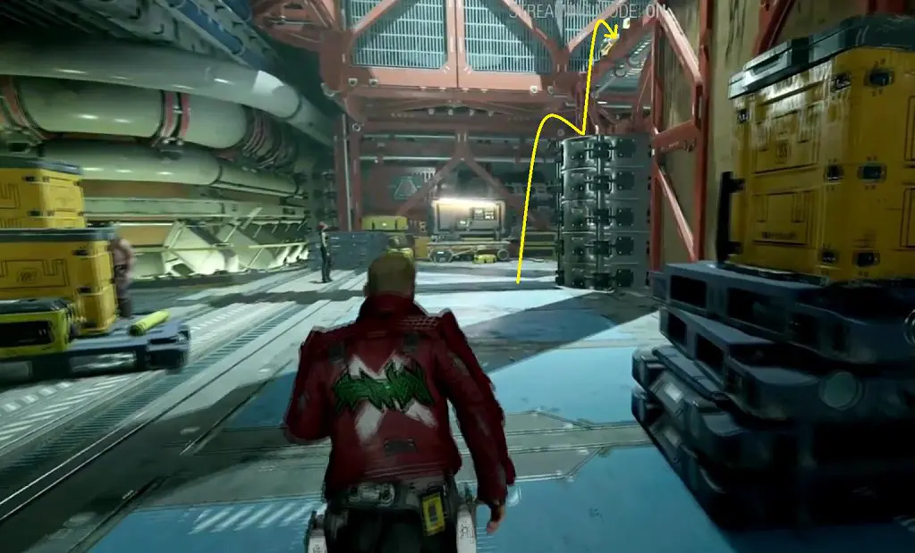 After collecting the last collectible, turn around and enter the next room. Climb the platform on the right side of the workbench as shown below. Here you will find the Guardian collectible on the floor.