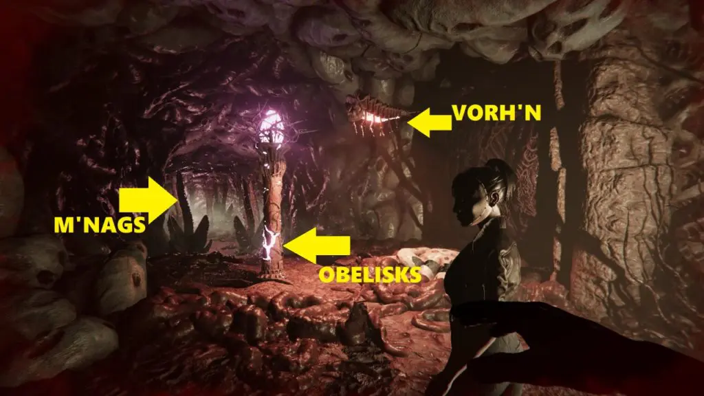 - Get Through M’nagi: Use the essence to fill obelisks that attract mature Vorh’n. Guide Vorh’n by activating the subsequent obelisks and Vorh’n will lead you safely through M’nags.