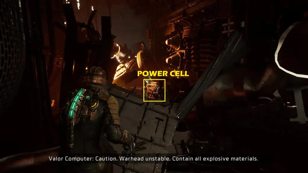 After defeating the monster, get the power cell from the right portion of the room and insert it into the warhead power socket. This will power up the warhead. Now go to the console in front of the warhead and use it to release the warhead.