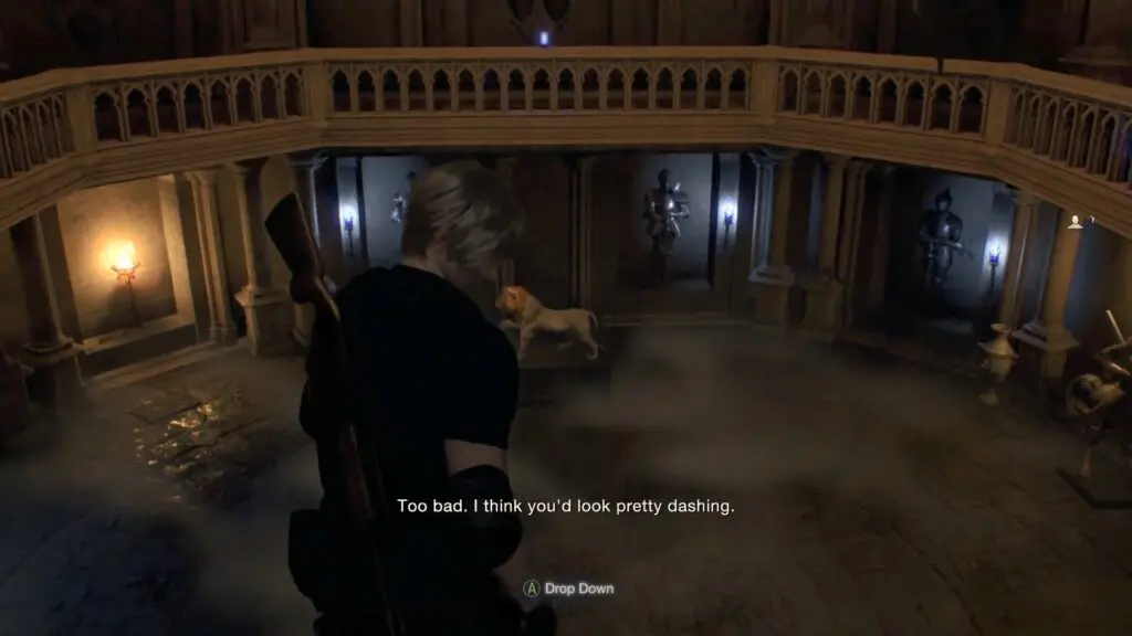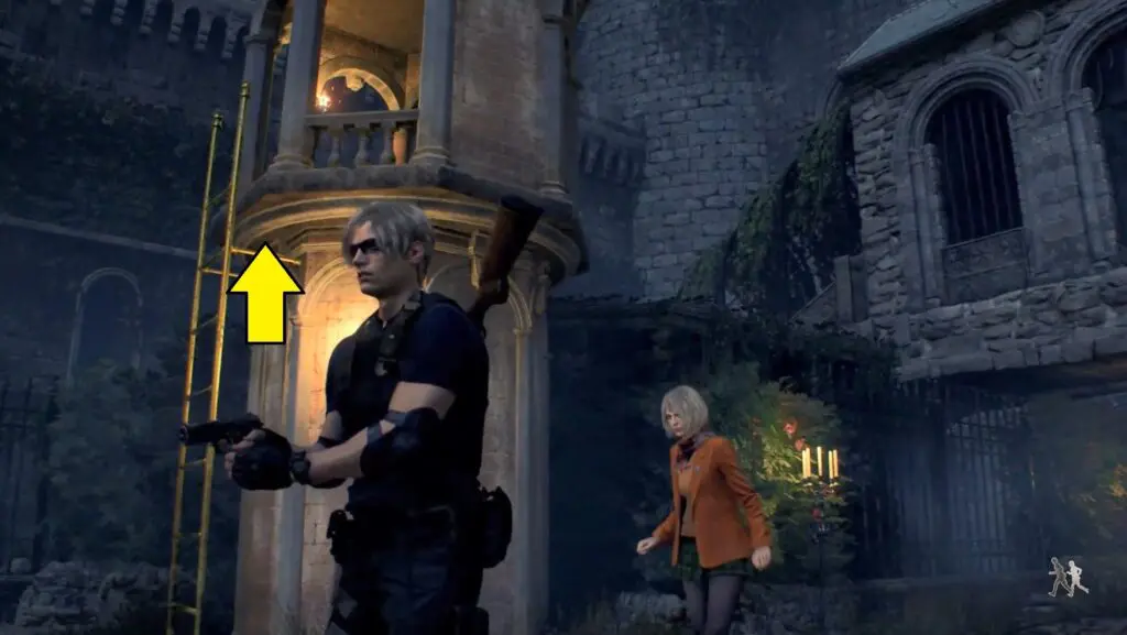 As you begin the chapter, you’ll meet up with Ashley again in a room that overlooks the castle’s courtyard. Make your way outside and descend the stairs leading to the courtyard.
